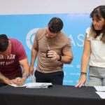 El intendente interino Sebastián Echarren, junto a la secretaria de Desarrollo Social Eugenia Macías, encabezaron la entrega...