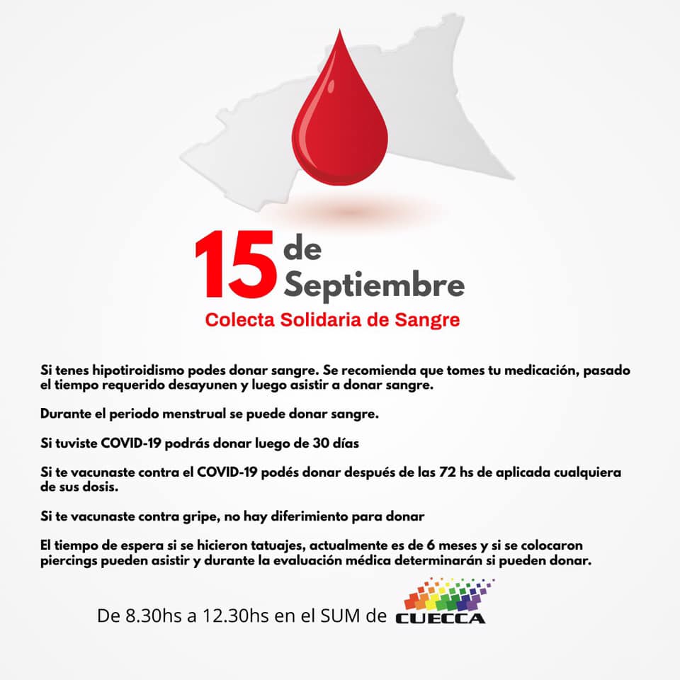 15 DE SEPTIEMBRE: COLECTA DE SANGRE EN CASTELLI