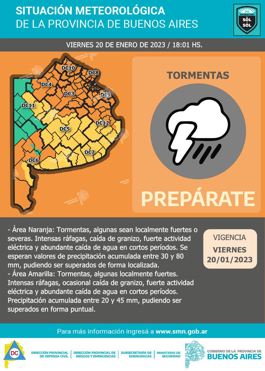 Según precisó el organismo, la provincia y Ciudad de Buenos Aires serán afectadas por tormentas de variada intensidad, algunas de las cuales podrán ser «fuertes o severas».