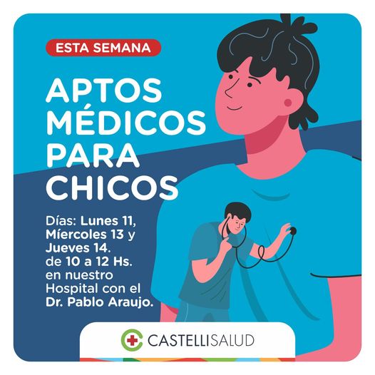 Ya se encuentra a disposición de la comunidad la posibilidad de hacerse aptos médicos para vecinos y vecinas de 0 a 15 años de edad. En el Hospital, de 10:00 a 12:00hs.