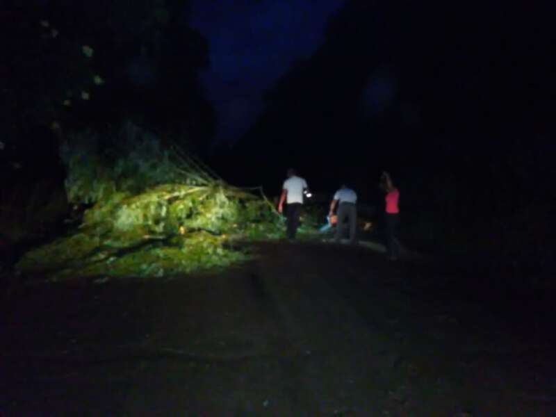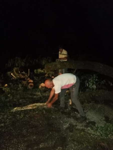 los arboles de gran porte y ramas caídas sobre la calzada obligó a los trabajadores a realizar trabajos de noche para liberar la traza.