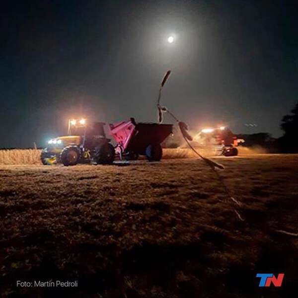 “La actividad agropecuaria no tiene horarios” dijo al tiempo que mostró como en plena noche, trabaja el productor agropecuario Juan Pedroli, su hermano, en un campo de Castelli, provincia de Buenos Aires.
