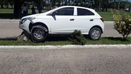 Un automóvil Chevrolet colisionó este mediodía contra una columna de alumbrado público en el Boulevard «Papa...