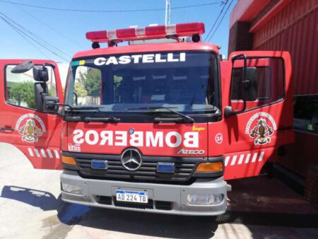 Una camioneta volcó, lo que motivó la salida de los bomberos de Castelli en dirección al camino...