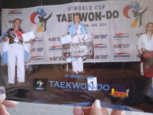 Virginia de los Santos, representante de Castelli, Club Deportivo, salió Campeona Mundial en forma Segundo dan categoría...