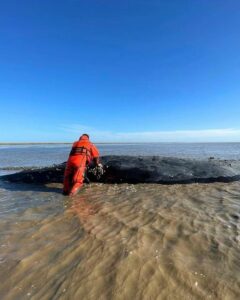 Finalmente murió la ballena hallada en las costas de Castelli, ubicada a unos 9 km de Cerro...
