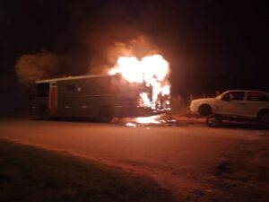 Un colectivo se incendio esta noche en el acceso Castelmar. Trabajó bomberos, defensa civil y policía. No...