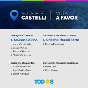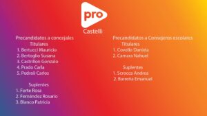 Lista PRO Castelli Concejales titulares: 1er concejal: Bertucci Mauricio 2do concejal: Bertoglio Susana 3er concejal: Castrillón Gonzalo...
