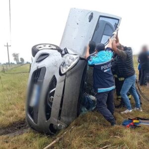 Esta tarde, cuatro personas debieron ser hospitalizadas tras despistar y volcar un automóvil Nissan, a la altura...