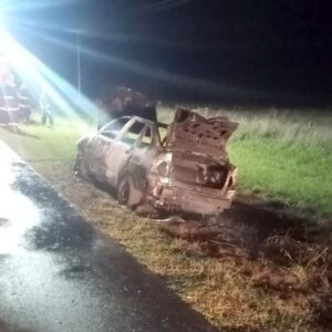 Se produjeron pérdidas totales tras incendiarse un automóvil Volkswagen Polo, en la Ruta Provincial N° 2, a...