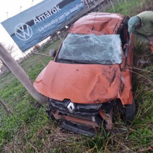 El siniestro se registró esta mañana en Chascomús, cuando un Renault KWID perdió el control y volcó....