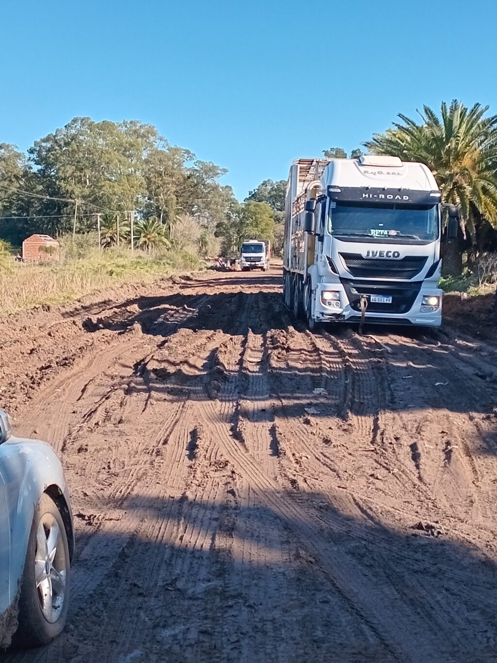 Vecinos de la zona reportaron que el hecho se produjo esta mañana. Un camión de haciendas se encajó y otro al Intentar sacarlo, también culminó encajado.