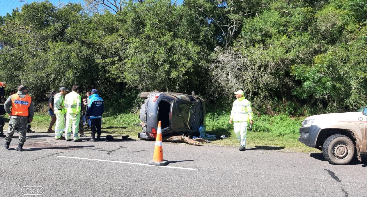 Ocurrió este mediodía en el km 193,500 de la ruta 11 cuando por causas que se establecerán un automóvil citroen c3 se despistó y volcó.