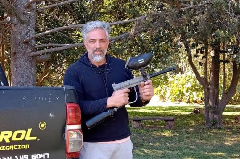 Miguel Canale, de profesión controlador de plagas, más conocido en el campo como el cotorrero que, después de un largo recorrido, está patentando una especie de marcadora de paintball para combatir estas poblaciones de aves.