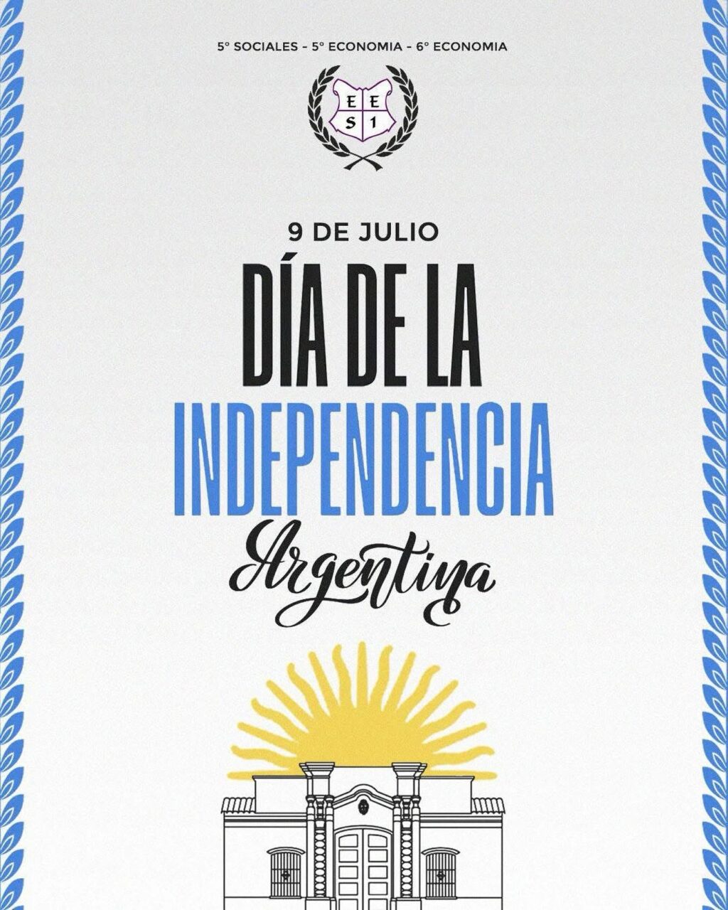 Con motivo del 209° aniversario de la declaración de la independencia , los estudiantes de la EES N° 1, los invitamos a confeccionar un adorno repjresentativo, para que el miercoles 9 de julio todos decoremos la puerta de nuestros hogares, en función de reafirmar la importancia de nuestra INDEPENDENCIA.