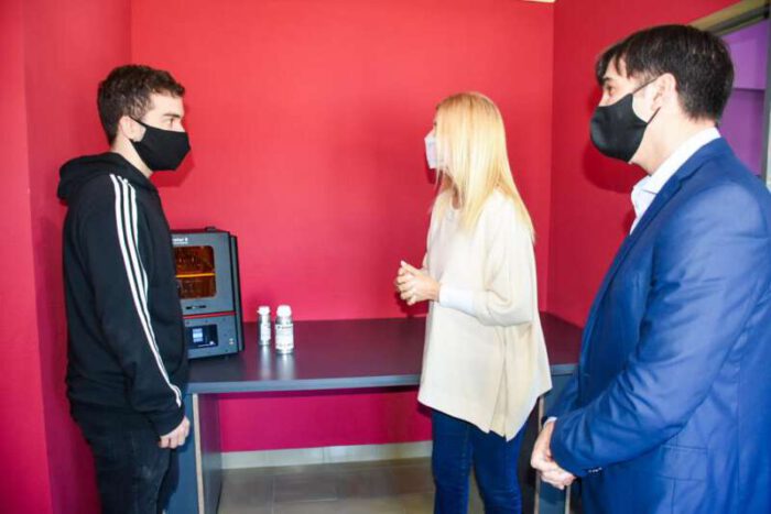 El en IMIT fueron recibidos por la coordinadora del instituto Juliana Muñoz y por los jóvenes que se están capacitando en este espacio que ya comenzó con la producción de sus primeros prototipos.