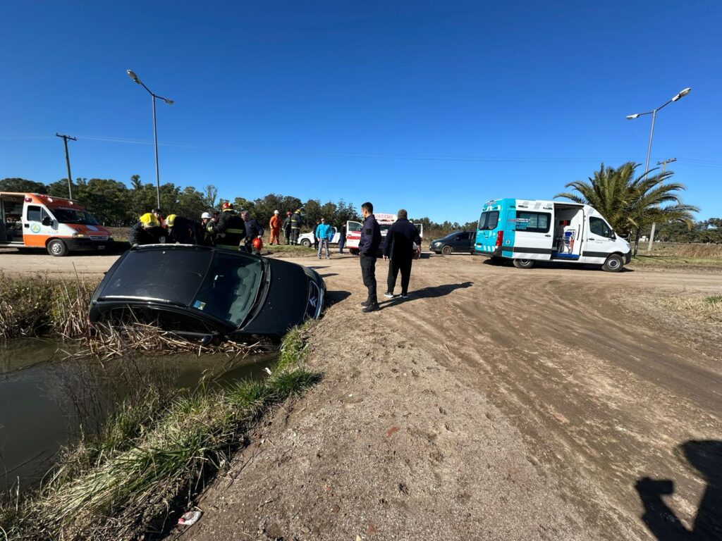 Cerca de las 11hs en Riva y Belgrano un auto cayo a un zanjón «una mamá y un niño solo sufrieron un susto» dijo el bombero