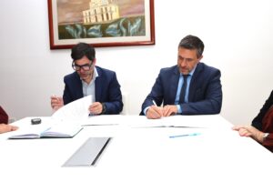 El Intendente Francisco Echarren firmó junto a Amado Zogbi, Recor de la Universidad Atlántida Argentina, el convenio...