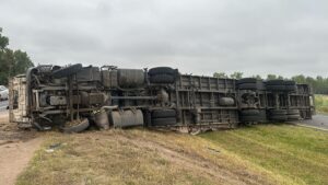 Un camión de carga volcó esta mañana cerca de las 7hs en el km 192 de la...