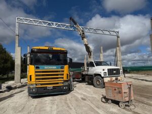 El intendente de Castelli Francisco Echarren mostró la llegada de camiones con parte de la estructura de...