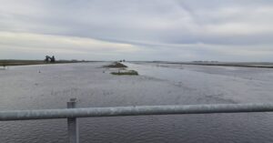 El canal comenzó a salirse del cauce ocasionando que el agua supere terraplenes y en algunos lugares...