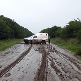 Los Bomberos Voluntarios y personal de Defensa Civil realizan desde anoche un operativo de rescate de unos 20 pescadores que quedaron varados en un camino rural tras quedar encajado el micro en el que se movilizaban.