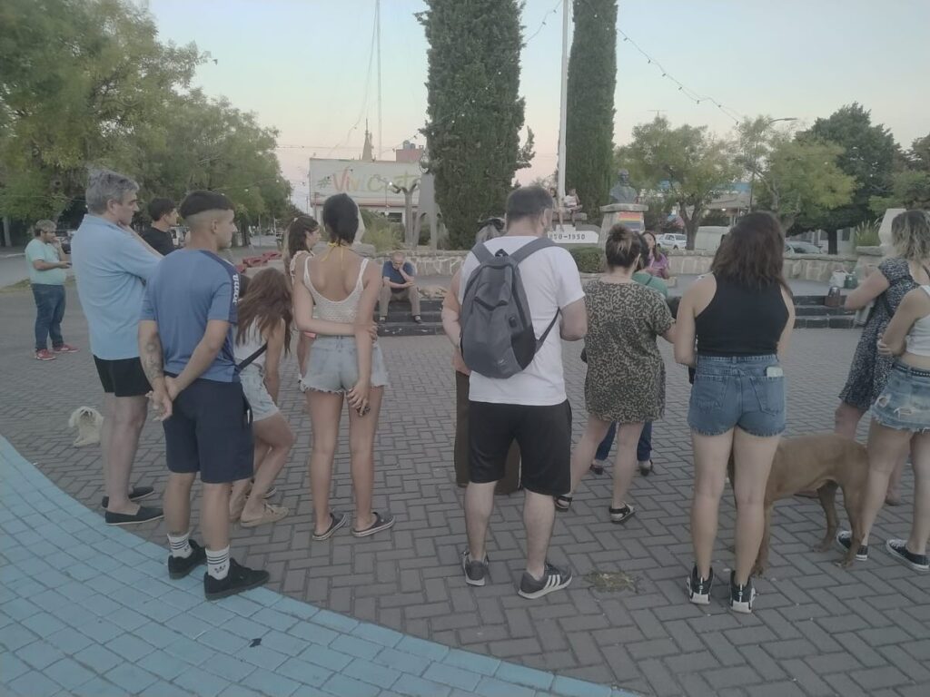 Esta tarde, en el marco de la marcha federal cuyo objetivo fue repudiar los dichos de Milei en Davos , vecinos de Castelli se concentraron en el Parque San Martín.