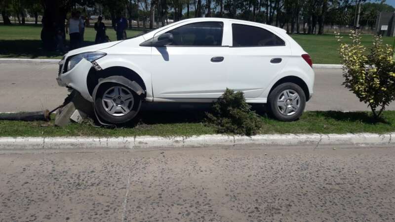 Un automóvil Chevrolet colisionó este mediodía contra una columna de alumbrado público en el Boulevard «Papa Francisco»