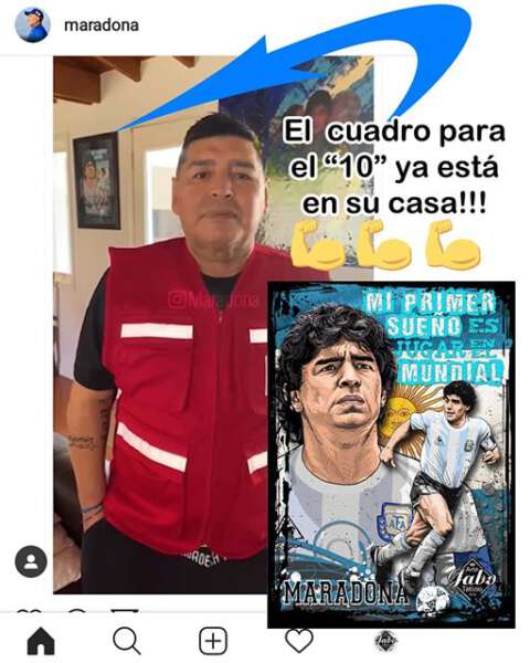 El artista Javier Borras realizó un nuevo cuadro, en esta oportunidad destinado a Diego Maradona, que ya lo tiene en su casa.