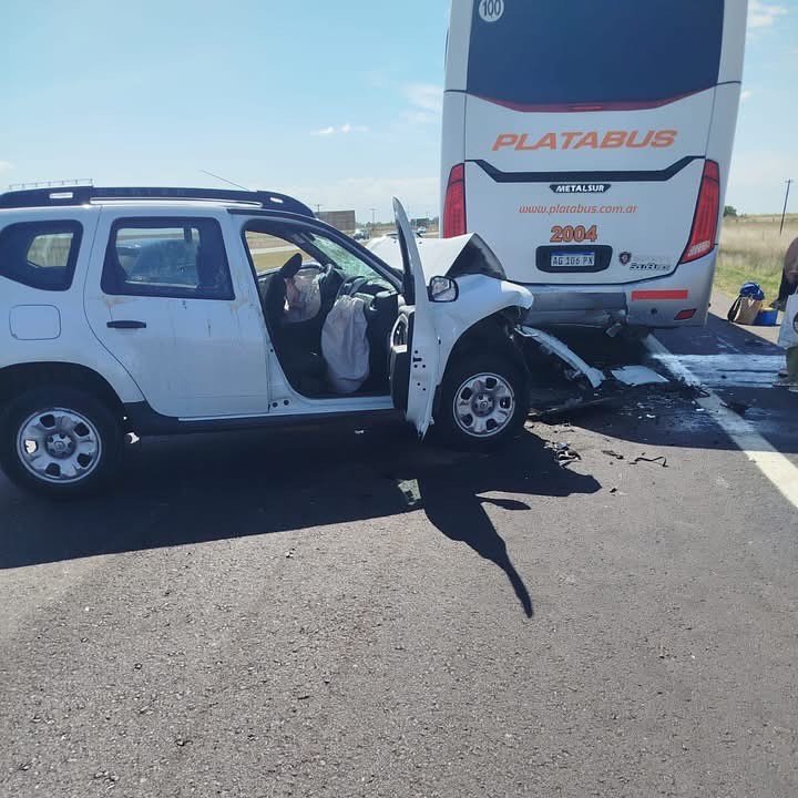 Este martes, se produjo una colisión por alcance entre una camioneta Renault Duster y un micro de la empresa Plata Bus en el Km 198 de la autovia 2.