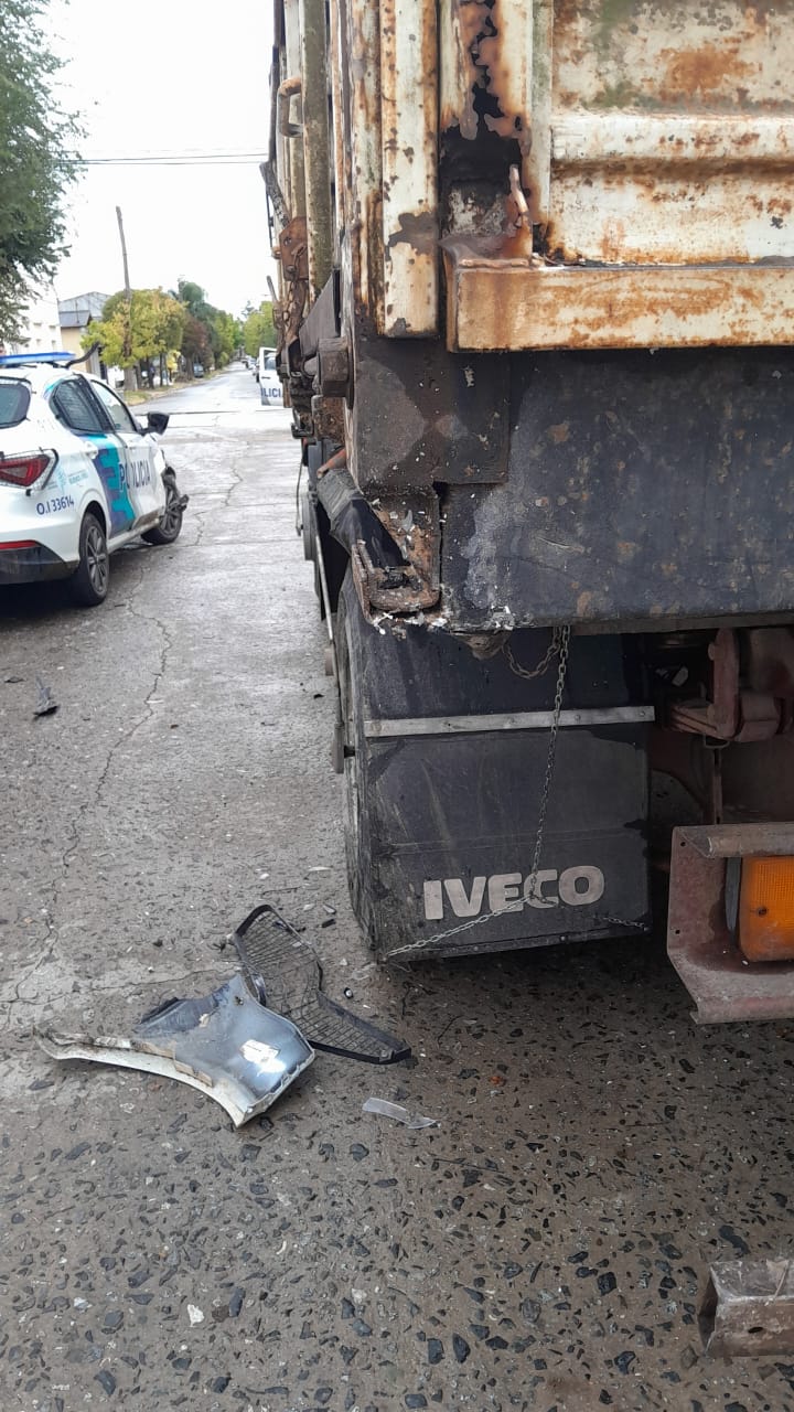 Un vehículo policial protagonizó un accidente en la tarde de este martes en la ciudad, al colisionar contra un camión en calle Pellegrini.